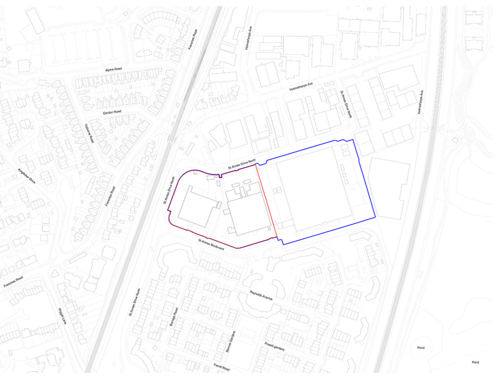 The existing site covers 1.3 hectares and comprises two industrial warehouses with adjoining two storey offices.